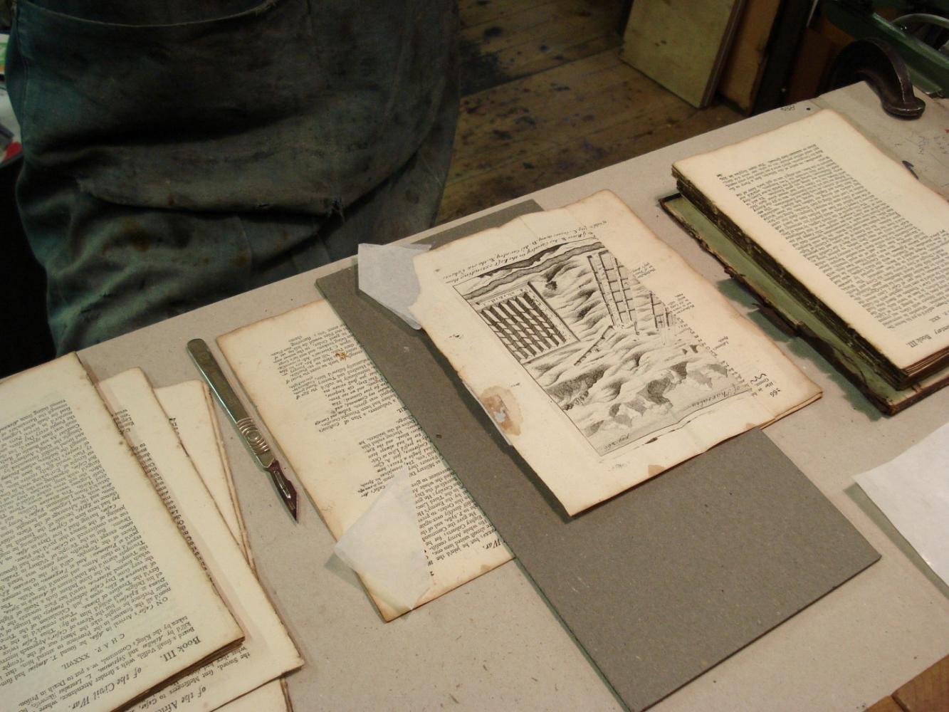Repairs to a large early 19th century map of Britain.
