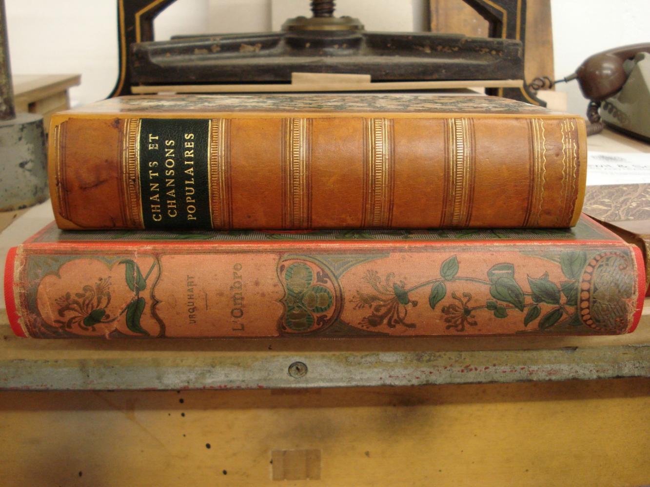 Rebacking is the process of rebinding a book with a new spine, re-using the original boards, and re-laying the original spine if possible. These are a some examples of books I've rebacked.