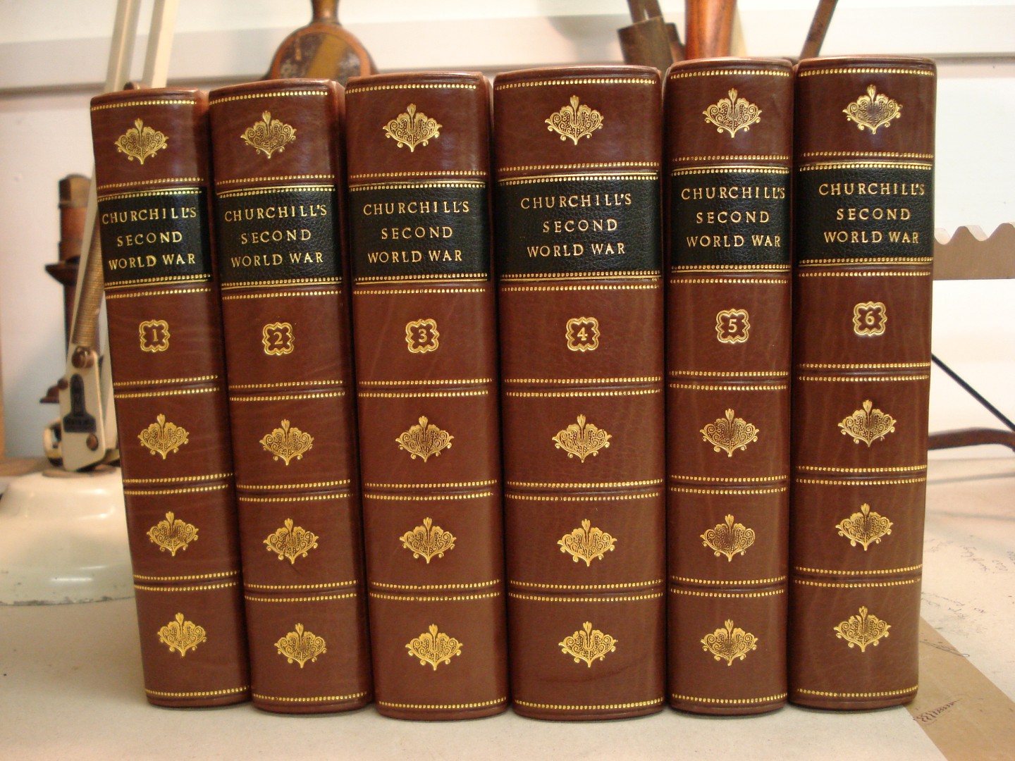 Quarter leather binding, decorative paper sides.