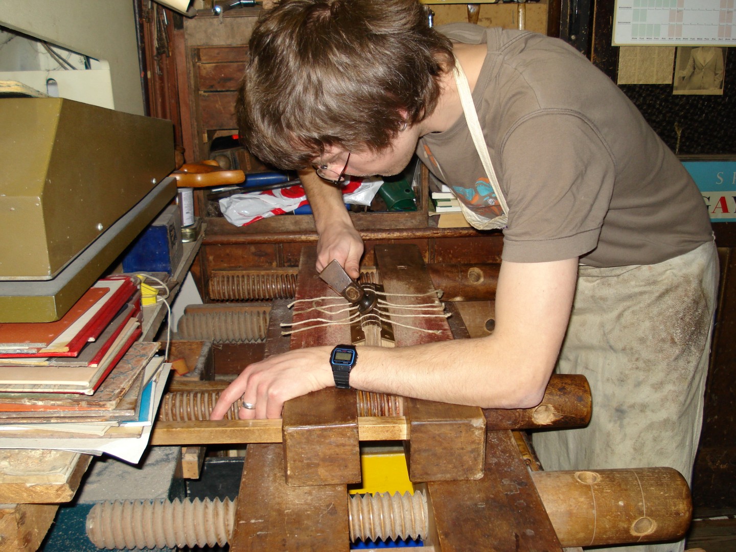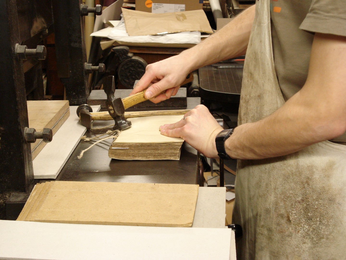 Backing the book in a laying press.