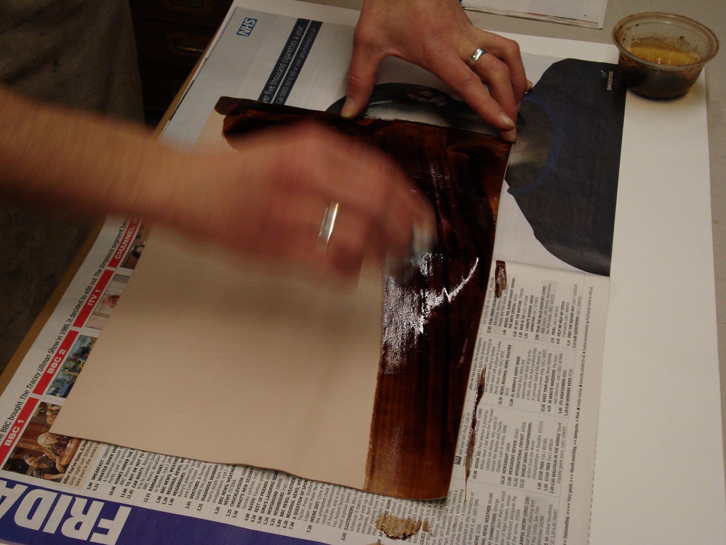 Staining the leather (calf).