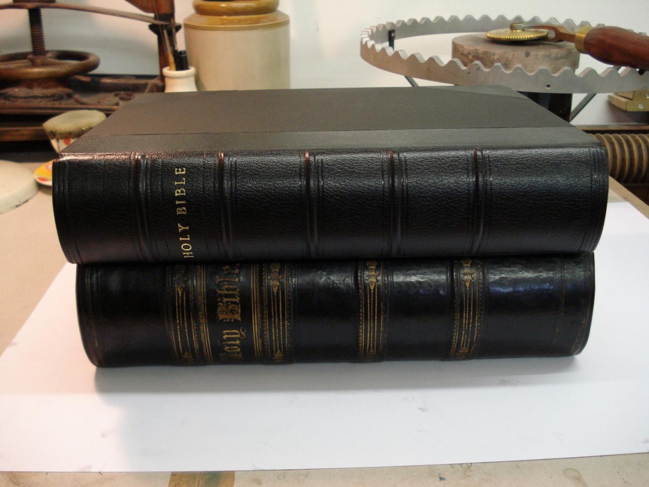 Rebacking is the process of rebinding a book with a new spine, re-using the original boards, and re-laying the original spine if possible. These are a some examples of books I've rebacked.