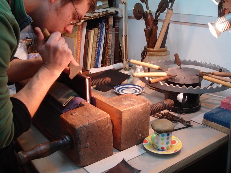 Pete started learning bookbinding in the late 1990's, working for his father Tim Wiltshire at the Winchester Bindery (see below). During this period he worked part time for Richard Harshers Trade Bindery in Romsey, and also spent a day a week with Paper Conservator Jo Surridge in 2001.