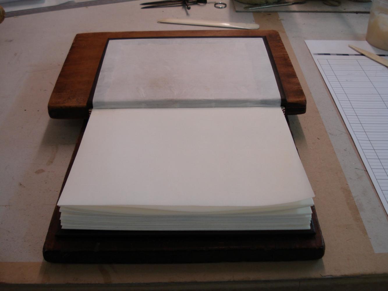 Endpapers put down open.