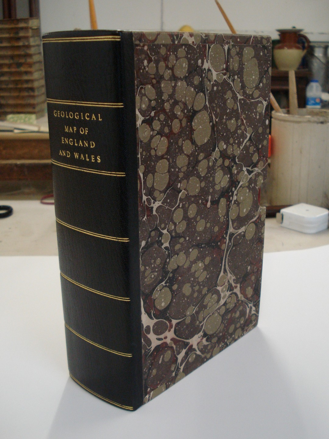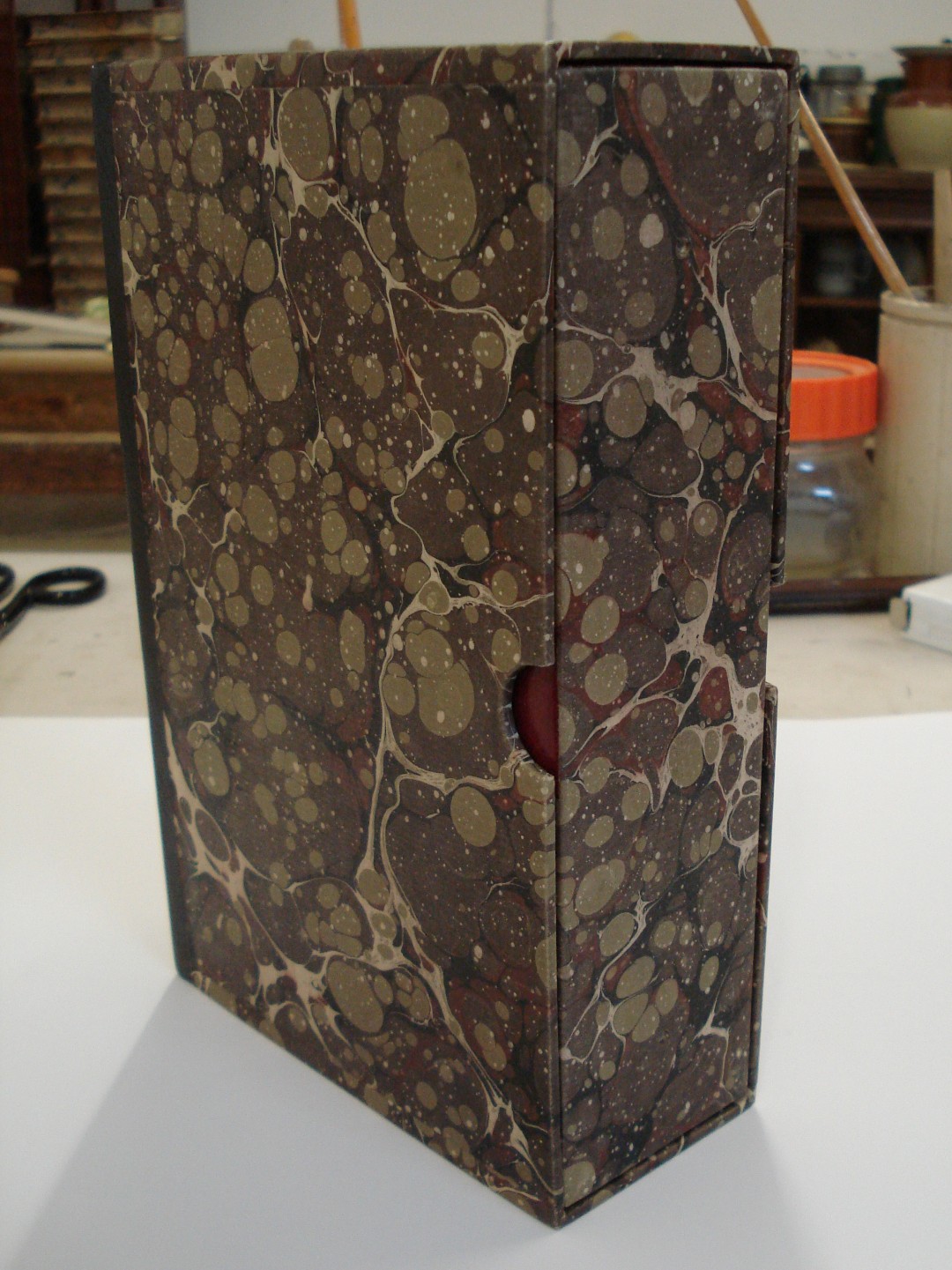 Slipcase velum edges, marbled sides (velum taken from original binding.)