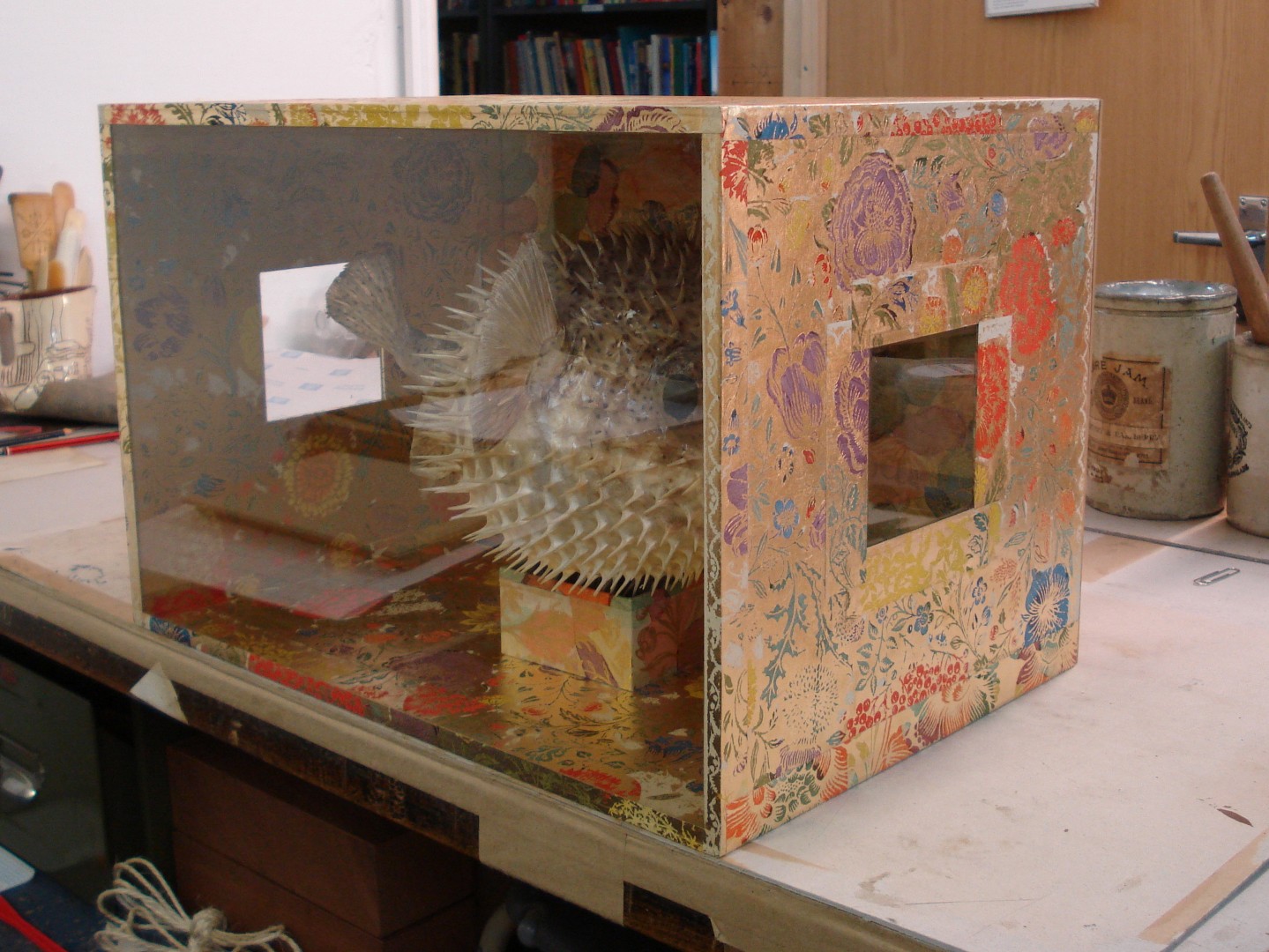 Bound book with slipcase, velum edges, marbled sides (velum taken from original binding.)