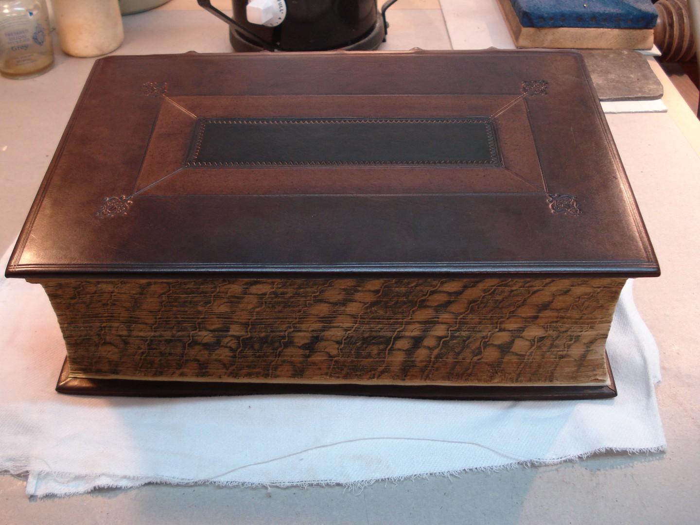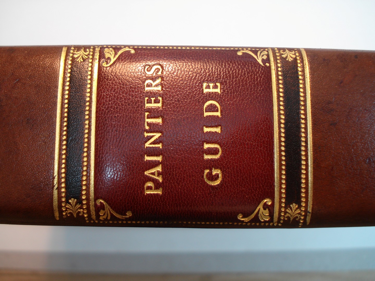 Painters Guide 1825, bound in half leather, stained calf, with hand marble sides, reproducing the original binding (which was water damaged).