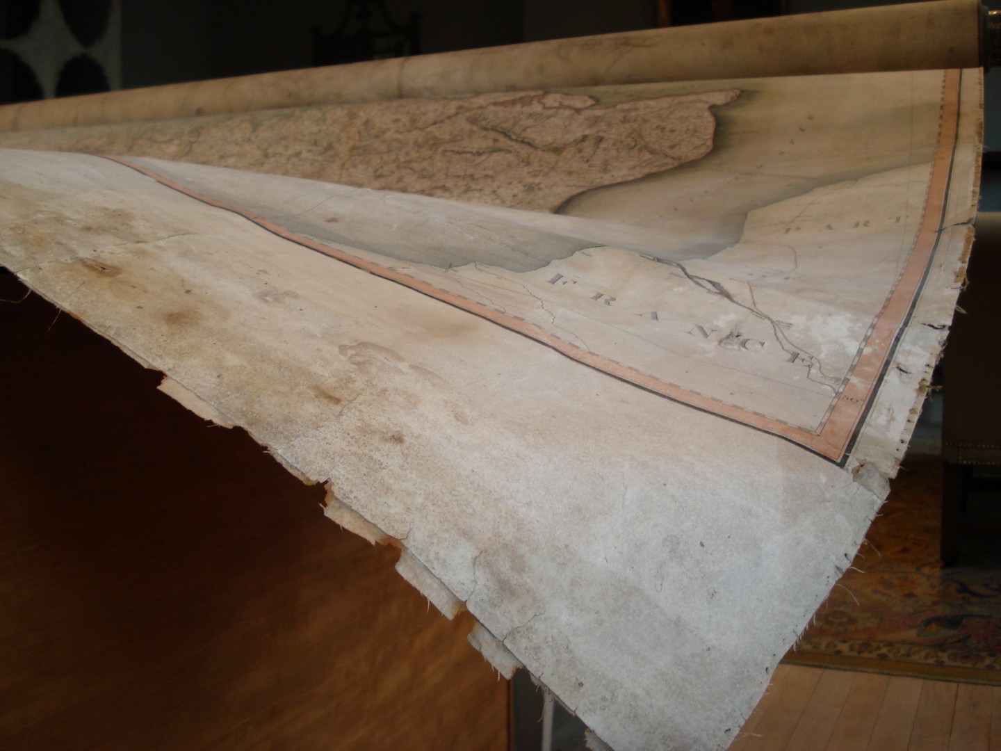 Repairs to a large early 19th century map of Britain.