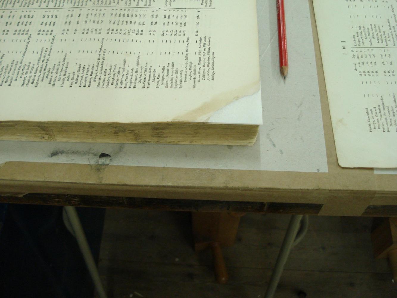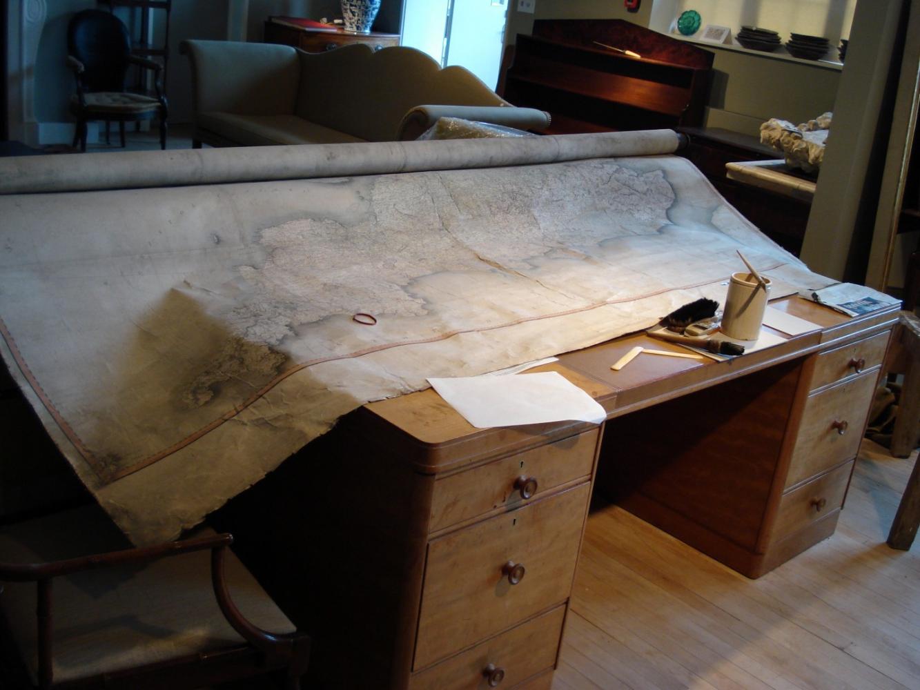 Repairs to a large early 19th century map of Britain.
